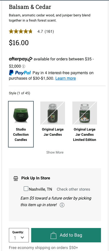 Understanding the importance of choice, Yankee Candle offers a plethora of options to its customers. Through geolocation, candle enthusiasts can select and save their preferred store. The brand incentivizes in-store pickups and provides multiple payment options, including PayPal, Afterpay, and credit cards. Additionally, customers can customize candles by uploading personalized label photos and messages.